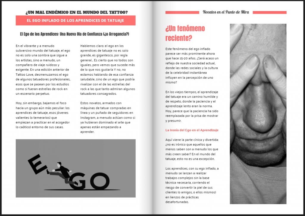 En el número 26 de la Revista Tattoo Love publicamos un artículo de opinión en el que hablamos del Ego de los Aprendices y analizamos cómo vemos que son la gran mayoría, después de años y años tratando con ellos. Por suerte, no todos son así…