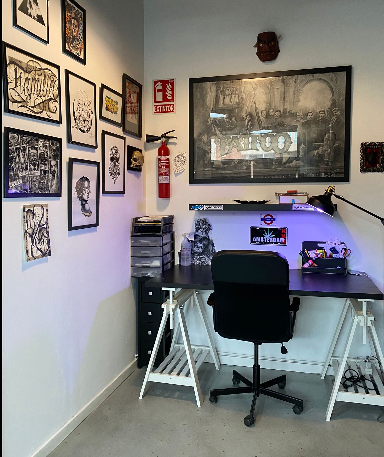 3 salas de trabajo completamente equipadas para satisfacer las necesidades individuales de los tatuadores.