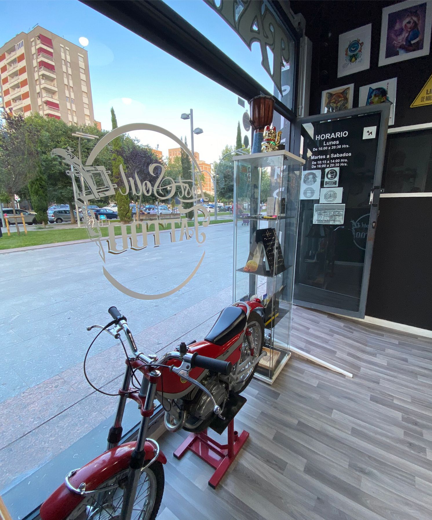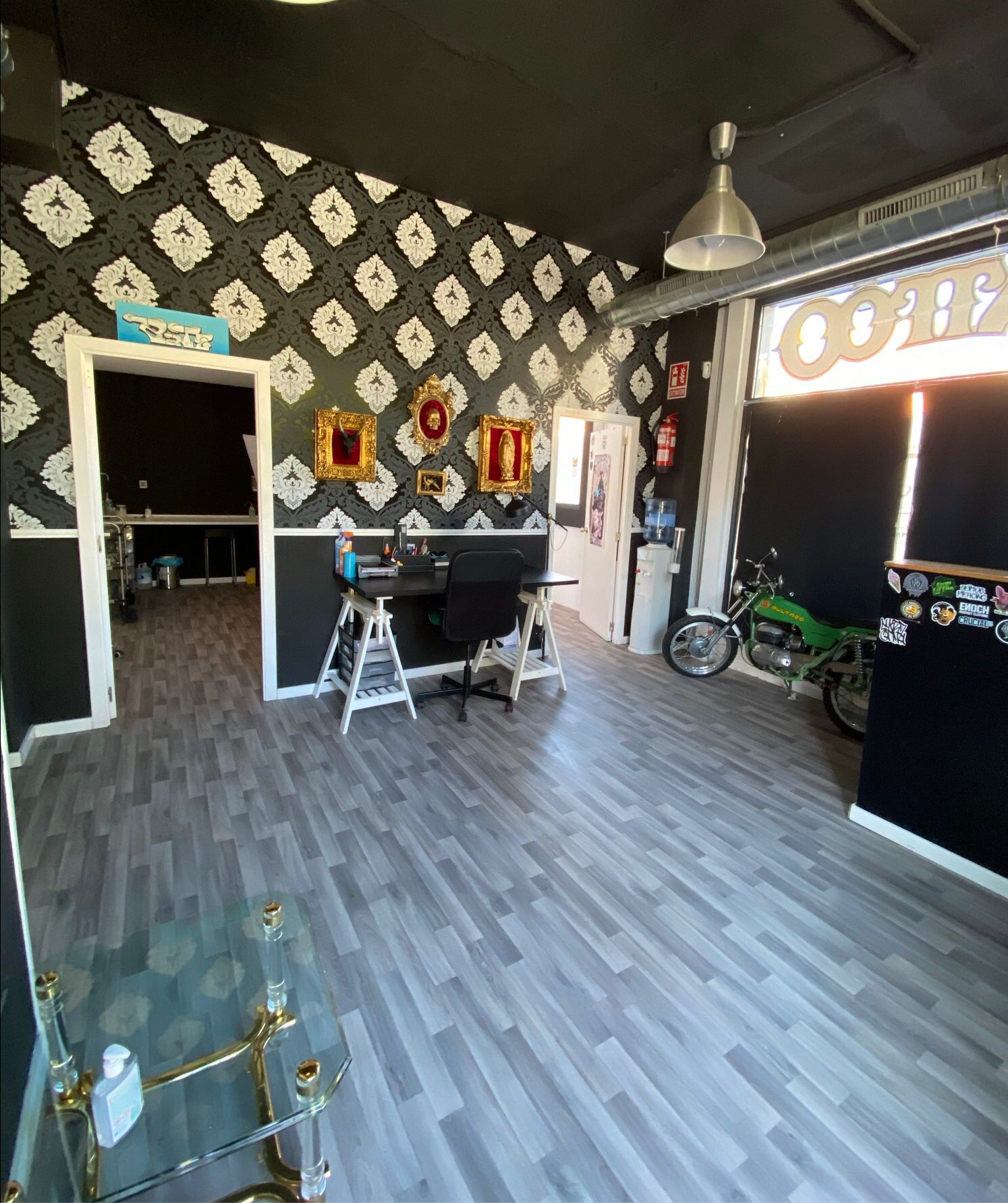 Las instalaciones del estudio comprenden una sala de esterilización que garantiza prácticas sanitarias impecables, un almacén organizado y una sala principal que proporciona un ambiente profesional y acogedor para los clientes.